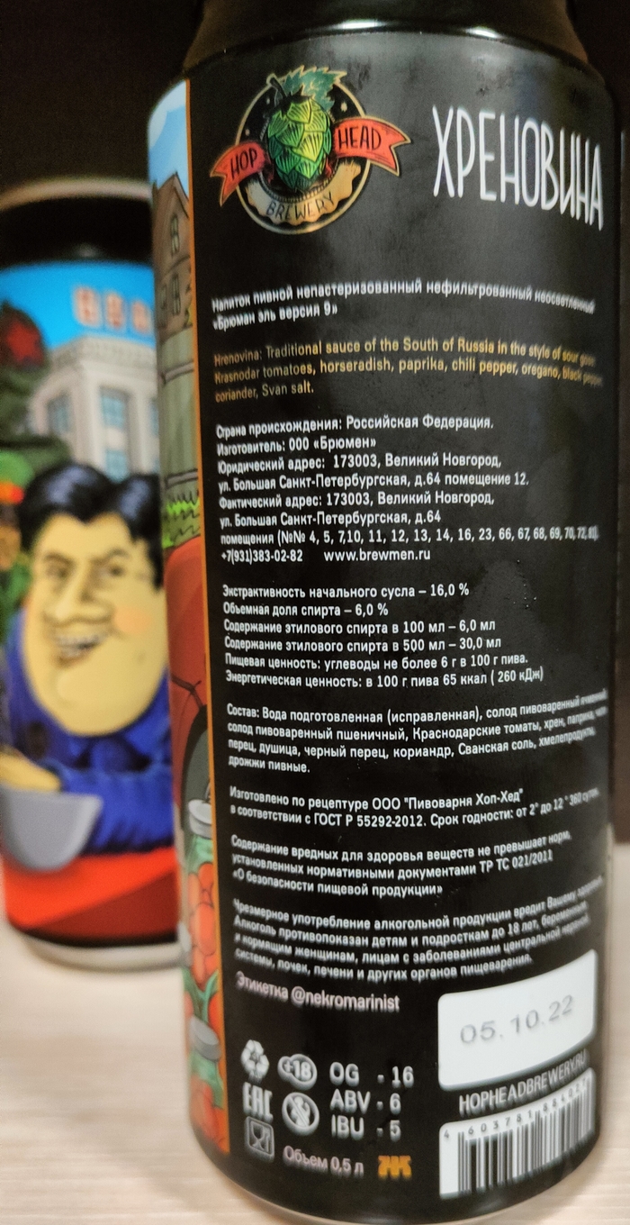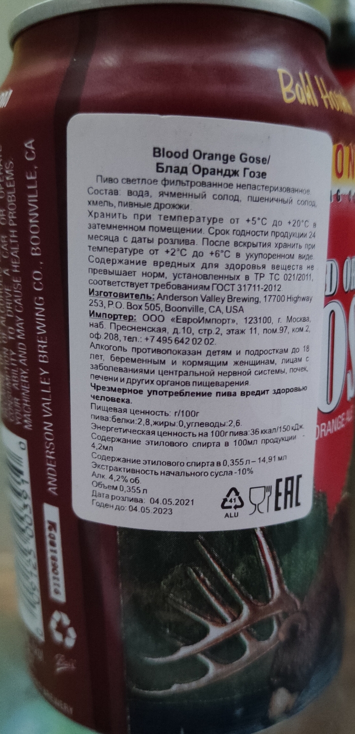 Состав: вода, солод, хмель, дрожжи, томатный сок/паста, специи.