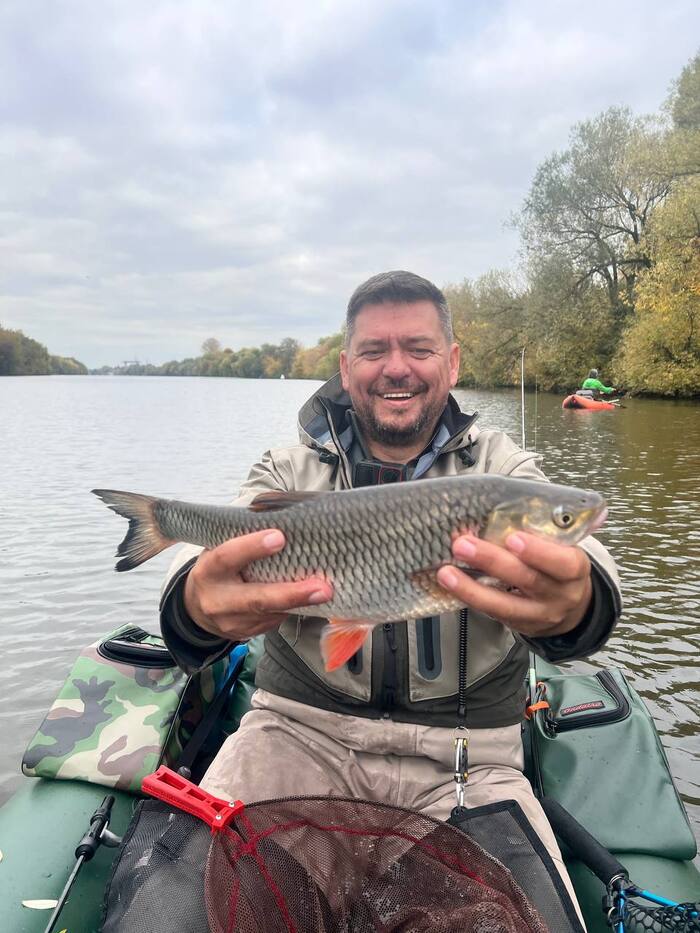 Я езжу по набережным Москва-реки и высматриваю рыбов. Как только нахожу нужный мне размер голавлика, то просто останавливаюсь, ловлю рыбку и еду дальше.