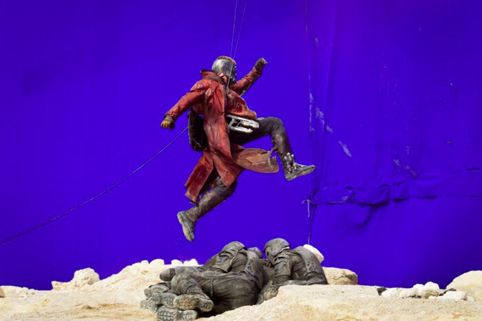 Непристойный жест Звёздного Лорда был импровизацией Криса Пратта. [см. титульное изображение]