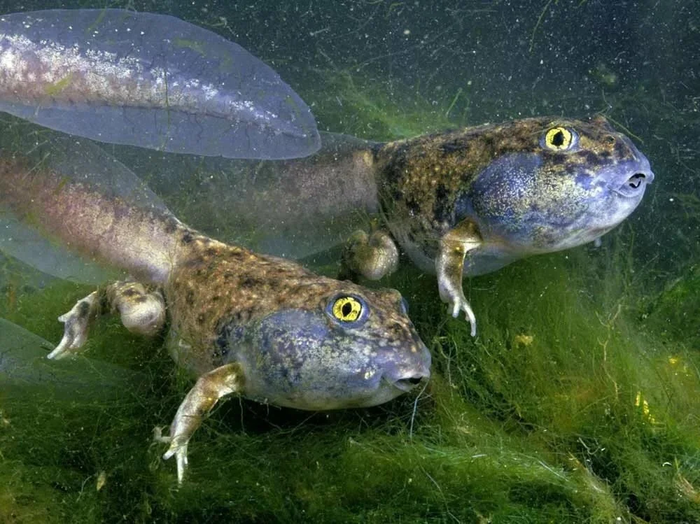 Если в пруду случилось нарушение экосистемы или температурного режима, головастики останавливаются в развитии и не превращаются во взрослых лягушек, продолжая жрать и расти до одурения! Как только условия вновь станут благоприятными, молодые лягушки сами решат: оставаться ли им вечно молодыми или вступить на сушу и во взрослую жизнь.