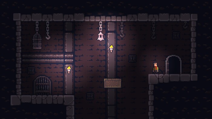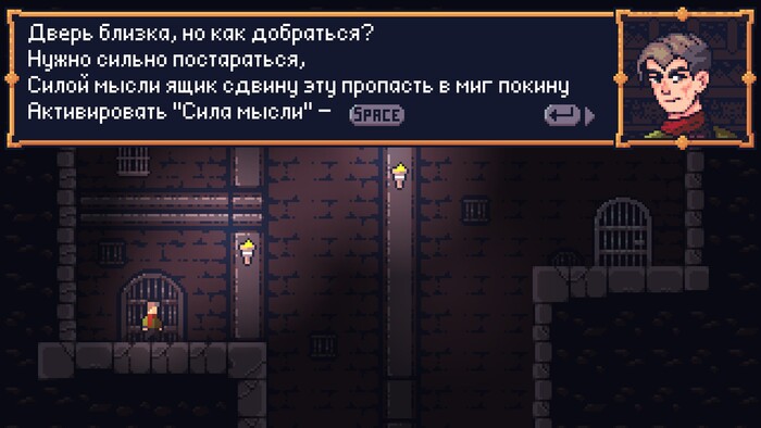 В наличии несколько видов возможностей по взаимодействию с окружением. Наша цель на каждом уровне - добежать до открытой двери и при этом герой должен остаться жив, не попасть в ловушку или не свалиться в пропасть.