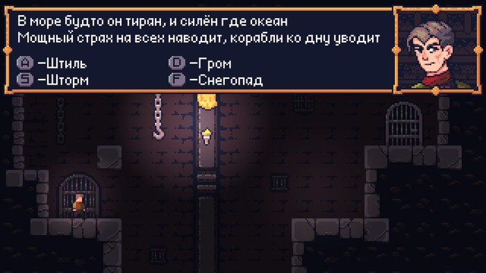 Наш герой оказался в подземелье, в клетке. Ему на помощь приходит шут, который говорит загадками. Если их разгадать, то возможно удастся покинуть узилище. Все диалоги и реплики персонажей оформлены в стихотворной форме.