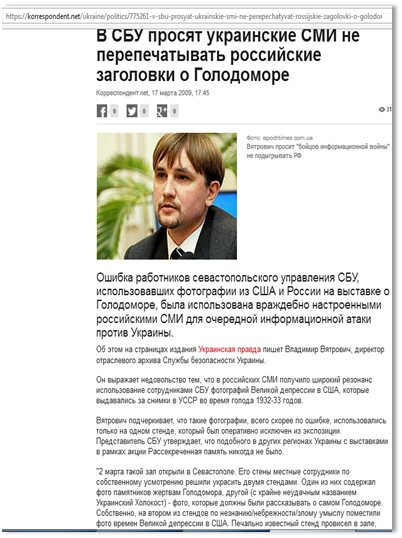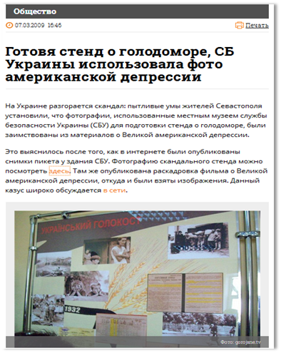 Потому для организации фотовыставок Голодомора приходится идти на заведомую фальсификацию и использовать фотографии, сделанные во времена американской депрессии как это сделали в управлении Севастопольского СБУ
