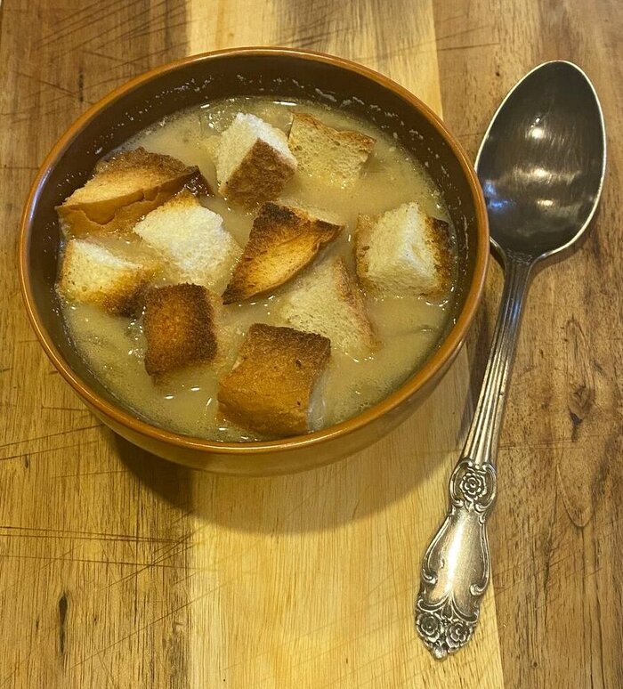 Вполне такой густой и "нажористый" луковый суп. Несмотря на скромность компонентов. Вспоминаем о французской литературе и мысленно передаем привет парижской бедноте прошлых веков из реальной современности. Поблагодарив за опыт !