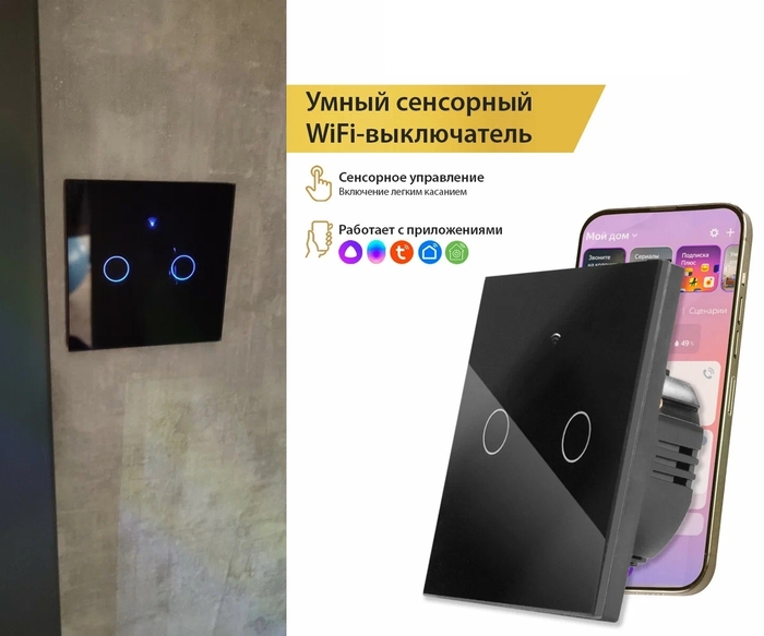 Умный сенсорный Wi-Fi выключатель позволяет управлять световыми приборами с помощью мобильного приложения или голосовым помощником Яндекс Алиса.