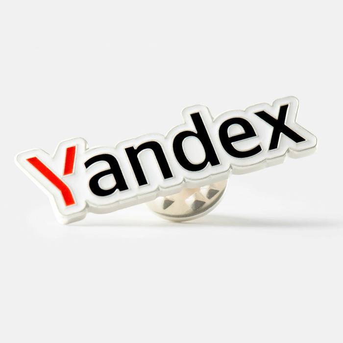 Металлический значок с международным логотипом Яндекса. Крепится на застёжку-бабочку, поэтому никуда не денется и будет держаться ровно. Сделан из латуни и алюминия — не потеряет вид и прослужит долго.