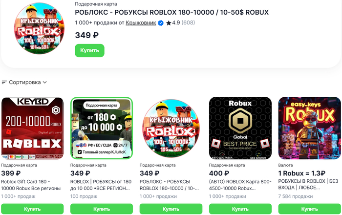 Перейдите на сайт ggsel. Введите в поисковой строке «Робуксы».