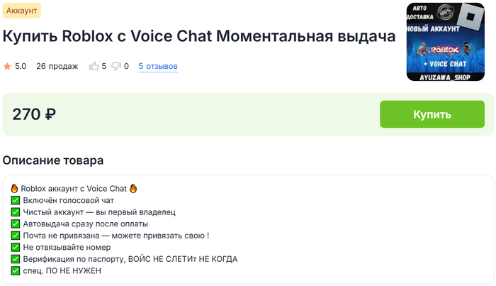 Здесь вы найдете чистый аккаунт со включенным голосовым чатом, будете первым и единственным его владельцем. К аккаунту не привязана почта — привяжите свою и играйте в свое удовольствие.