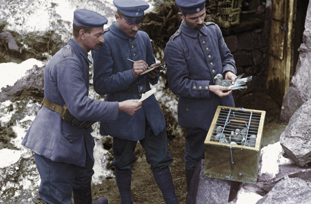 Почтовые голуби – отдельная тема – они могли беспрепятственно переносить секретные депеши через линию фронта в любом месте, в любую погоду и в любое время года.