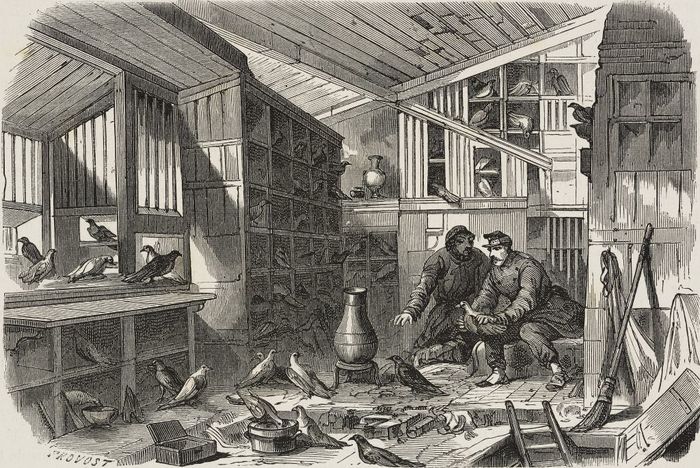 В 1870 году прусская армия осадила Париж. Чтобы наладить связь между осажденной столицей и остальной страной, французы организовали специальный «голубиный почтамт»: из города птиц вывозили на воздушных шарах, а потом они возвращались своим ходом с письмами. 4 ноября 1870 года почтовое ведомство издало специальный декрет, первая статья которого говорила: «Всякий имеет право, живя на территории республики, сноситься с Парижем при помощи голубей управления почт и телеграфов с уплатой 50 сантимов за слово, взимаемых при отправлении, и в пределах, указанных в приказе начальника управления». При отправлении одни служащие «Голубиной почты» переписывали сообщения в сильно уменьшенном виде, а после доставки другие - занимались их расшифровкой перед передачей адресату. Всего с помощью голубей за время осады было доставлено около 150 тысяч государственных писем и более миллиона частных.