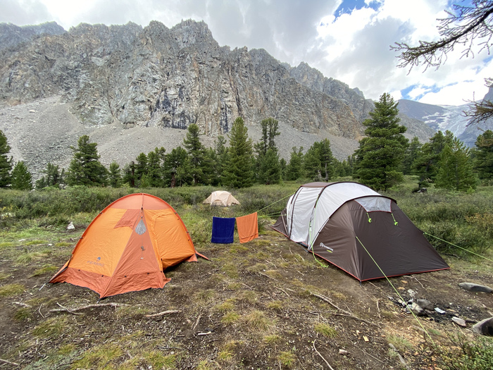 Просыпаться утром в горах в палатке – не самое приятное впечатление: холодно, сыро, спрятаться и согреться негде, даже от горячей воды не погреться – ее там нет. Приходится идти и чистить зубы в ледяной воде. Очень холодное утро (температура ночью достигала +10) началось с необходимости приготовить завтрак и вскипятить чай. Часть компании хотела на завтрак гречневую кашу, начали ее варить, я же гречку ненавижу и завтракал бутербродами, а еще квасом, который вчера купили в баре. Ну как бутербродами, хлеба у нас с собой не было, зато был лаваш, который я покупал еще в Барнауле на случай, если мы окажемся там, где вообще нет еды, тут он пригодился и оставалось еще несколько пачек, но их мы, почему-то, не взяли с собой. Квас оказался очень вкусным, в нем зачем-то плавали ягоды крыжовника, но крыжовник давал немного сладости и кислинку. Когда согреешь чай, разведешь костер, утро становится намного приятнее, уже начинает пригревать солнце, свежий воздух, вид на горы и шум реки очень расслабляют. На одной горелке чай кипятить было бы очень долго, мы ставили сразу на две. Померзнув ночью, стало понятно, что горячую воду неплохо бы запасать, чтобы согреться, поэтому мы вскипятили еще чая для термосов. Самым неприятным в этом процессе было мытье посуды, которую обязательно нужно было помыть после гречки. Мыть посуду можно в 2 местах, в той самой бурной речке у лагеря и в помещении кухни в умывальниках, либо в помещении санузла. В кухне повара могут ругаться, но ничего страшного, мыть там можно, администрация разрешает, но естественно нужно предварительно избавиться от всех остатков еды, чтобы не засорять стоки. Мыть можно и в реке, вода там точно такая же ледяная как и в кране, мы пробовали и там и там, но в реке было ближе.