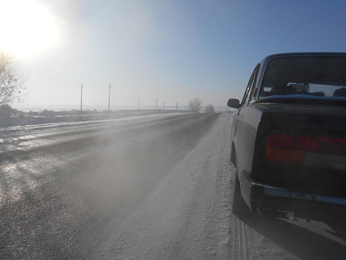 Есть у нас народная традиция — дороги чистить по минимуму. Иногда приходилось сбрасывать скорость до 40, под колёсами чистый лёд. Но все сложности компенсировались шикарными видами.