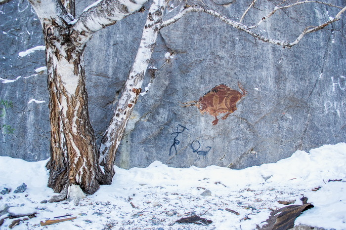 На скальных поверхностях имеются наскальные рисунки эпохи бронзового века, средневековья и этнографического времени. На фото представлены творения нынешних авторов: