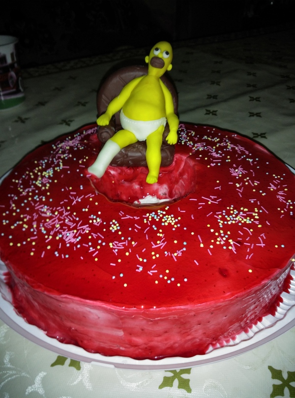 Меня на день рождение тоже не обделили и тетя зная что являюсь фанатом Симпсонов, заказала такой торт.