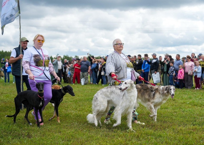 Сотая юбилейная Межрегиональная выставка собак гончих и борзых пород "Мемориал Р. И. Шияна" прошла 1 июля 2023 года в деревне Курцево.