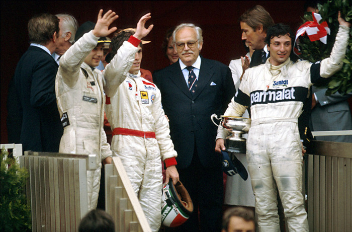 Патреза ведут под руку через толпуна подиум, чтобы представить его принцу Ренье и принцессе Грейс. Ошибочно считающийся вторым, Элио де Анджелис находится рядом со своим соотечественником, чтобы послушать Fratelli d'Italia, когда прибывает Андреа де Сезарис. Он знает что он в первой тройке, но не знает на каком месте!
