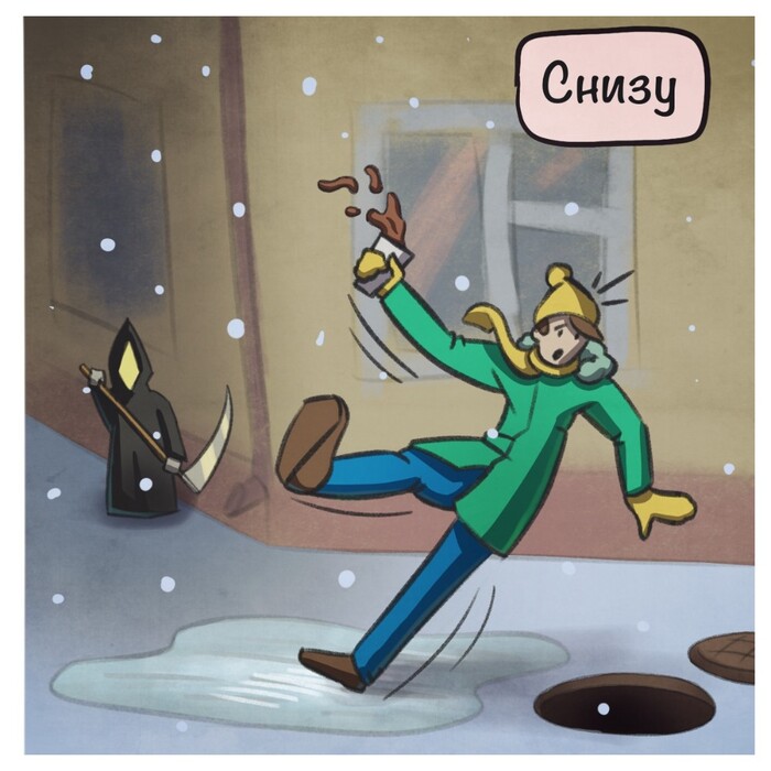 Повезло что был в шапке,и земля в снегу была, удары были смягчены.