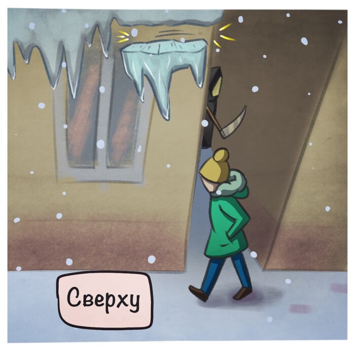 Хватает рукой за лом а он к земле примерз