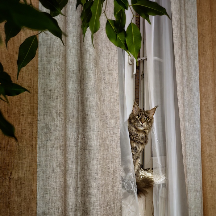Как он попал к нашим родителям. Его история чем-то похожа на мою. У моих родителей 15 лет жила кошка, Котофей её застал, я уже нет. Мои родители живут в СНТ. Они не пускали в дом уличных котов и кошек (чтобы не нервировать старую кошку, да и больше не хотели никого заводить) только их подкармливали. Если прибивались котята, обустраивали им жильё, чтобы не замёрзли, и когда котята вырастали - пристраивали их в добрые руки. И вот в одну зиму мама вынесла на улицу еду, чтобы подкормить уличных кошек, и услышала мяуканье под домом. Это оказался Котофей. Судя по всему он был домашний: на вид и оказался стерилизованный. Наверное его прошлые хозяева обижали - он был очень пугливый, на резкие движения и даже сейчас пугается веника, палок или каких-то похожих предметов, которые проносят мимо него. Хотя сейчас он "оттаял" благодаря любви родителей, но не до конца, всё ещё в процессе привыкания, что от людей теперь нет никакой угрозы. Домочадцы в шутку называют его перепуганный олень. А меня (из-за маленького размера не по возрасту) глистой. Что-то я отвлеклась. Мама стала его кормить и в сильные морозы пускать в терраску. Но ему этого было мало, он хотел в дом. Если он был на улице - запрыгивал на карниз и орал в окно (без преувеличения) часами. Когда он был в терраске - прыгал на ручку двери, пока её не откроет и не забежит в дом. В итоге родители сдались, когда в какой-то из дней увидели спящего Котофея в кровати и оставили его.