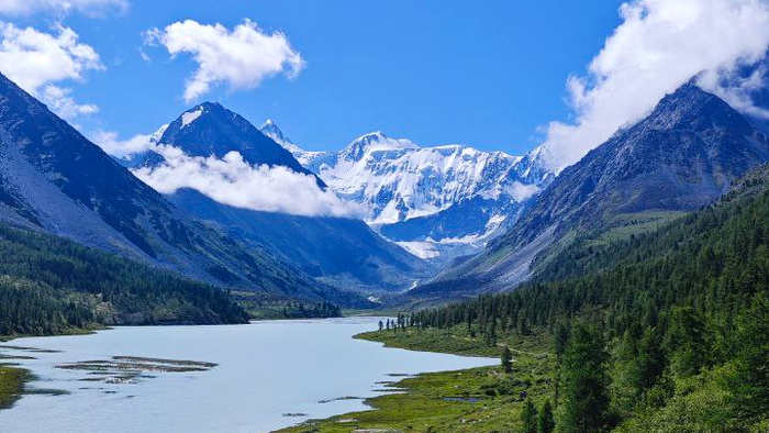 Белуха возвышается на границе России и Казахстана, припудренная вечными снегами, окружённая ледниками, альпийскими луговыми травами и почти мистическим светом. Говорят, здесь сходятся сразу четыре океана Евразии, а сама гора будто стоит в центре мира.