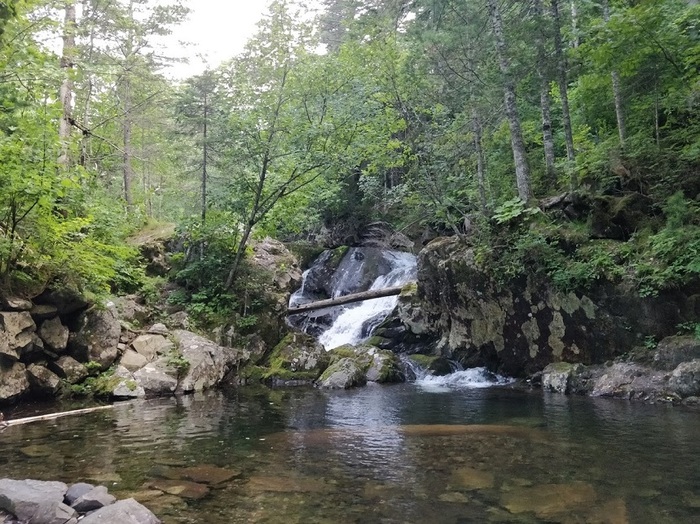 На ручье есть несколько мелких водопадов, запомнила название только одного из них – Медвежий.