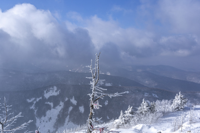 При восхождении можно любоваться очень живописными видами на долину, из которой мы приехали и начали подниматься. Внизу осталась горнолыжная база Грибановка, на стоянке которой оставлена машина, дальше пешком.