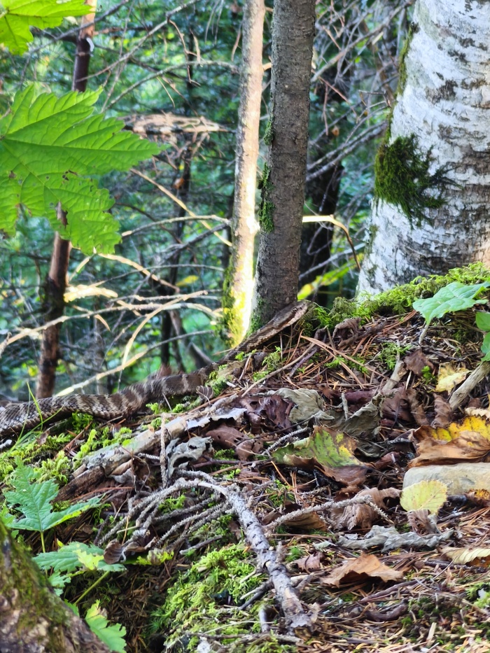Нашли в камнях небольшое дерево которое лежало как лавочка, место для нашего перекуса, покормили собаку и попоили её, она преодолела большой маршрут с нами и удостоилась большого внимания с нашей стороны🙂