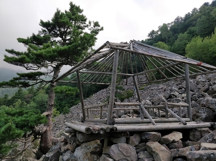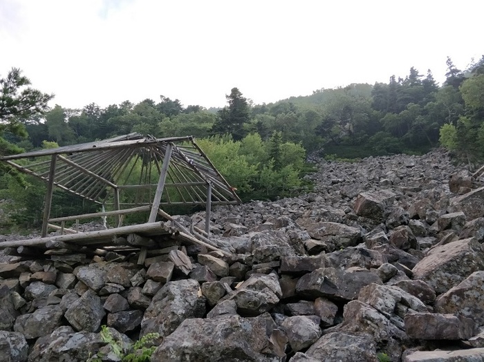 Около трех километров такой тропки, и вот мы уже стоим посреди курумника и смотрим на беседку. На самом деле, когда выходишь из леса - в первые секунды даже перехватывает дыхание от открывшегося вида. И на удивление, среди груды, казалось бы, беспорядочно наваленных камней есть что-то вроде каменной лестницы, явно рукотворной, которая ведет прямо к беседке. Об истории беседки я, к сожалению,  ничего не знаю - вроде бы ее построили монахи для сборов и медитаций. И я их понимаю, потому что вид с нее на Фалазу просто поразительный - так и хочется посидеть, подумать о чем-нибудь вечном :)