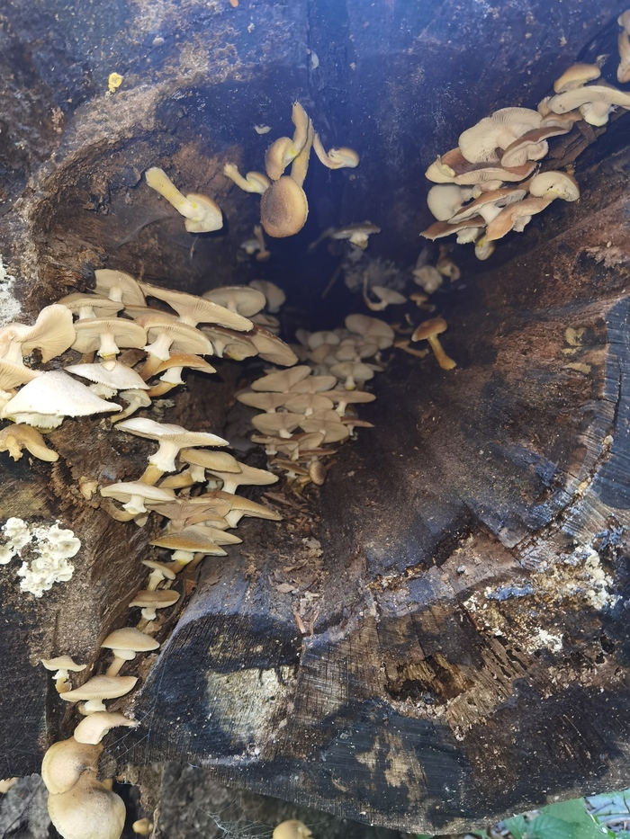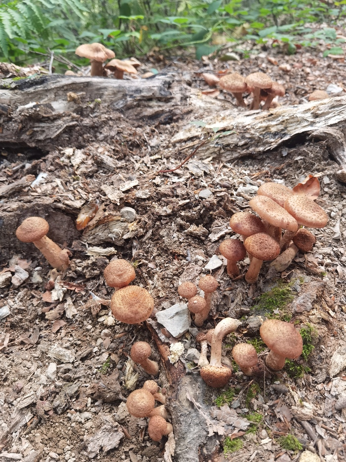По пути снова видели очень много разных грибов. В детстве я, как и многие, ходила за грибами в лес и мне это очень нравилось, но в грибах все равно не разбираюсь. Могу только предположить, что это были грузди, опята и ещё либо другие опята, либо поганки. Собирать, конечно же, ничего не стали, но грибов прям куча.