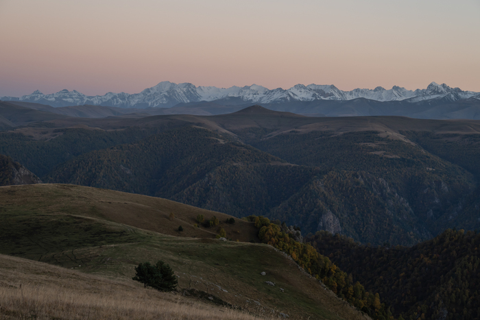 Хорошенько перекусили и посидели, наслаждаясь в тишине открывающимся умиротворяющим видом. Облака уже улеглись на горные хребты для ночлега. Теперь точно пора возвращаться.
