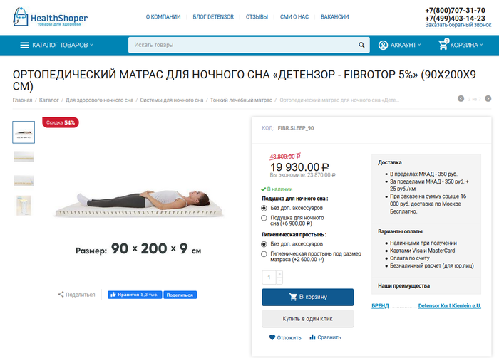 Матрас detensor fibrotop 9 в интернет-магазине.
