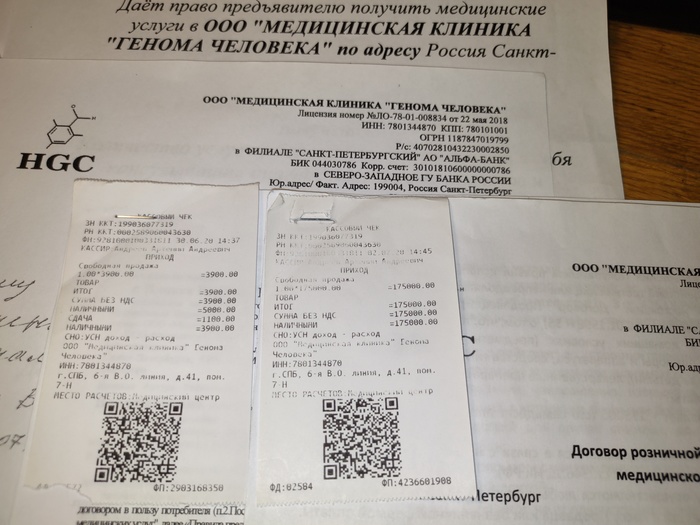 Моей бабушке 84 года, она инвалид, имеет статут малолетнего узника концлагерей. В конце июня ей поступил звонок от некого "Горздрава" с предложением пройти бесплатный медосмотр (каждый из вас принимает регулярно такие звонки). В результате первого разговора её убедили посетить клинику. В тот же день за ней выслали машину и повезли через весь город из Купчино на Васильевский остров. Привезли её по адресу: г. Санкт-Петербург, 6-я линия В. О., дом 41 в клинику с названием ООО "Медицинская клиника "Генома человека" " (ИНН 7801344870, генеральный директор Конеев Артур Рафаилович, лицензия № ЛО-78-01-008834 от 22.05.2018, владельцы Конеев, Петров Алексей Сергеевич). Результатом такого визита стал приём невролога, заключённый договор на оказание платных медицинский услуг стоимостью 3900 рублей и оказанные процедуры: блокандые уколы в спину (как это называется, когда ставят много уколов в спину?), дали таблетку и сделали капельницу. В этот день бабушку от клиники отвезли на машине обратно домой.
