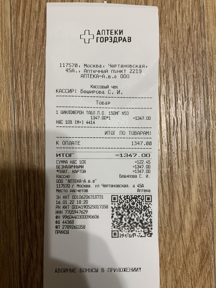 Пруфы в виде чека оттуда и скрин с сайта - тут (цена на сайте такая весь день, покупала родственница в аптеке, и план был купить в другой аптеке, но та оказалась закрыта, в итоге она взяла в аптеке которую увидела)