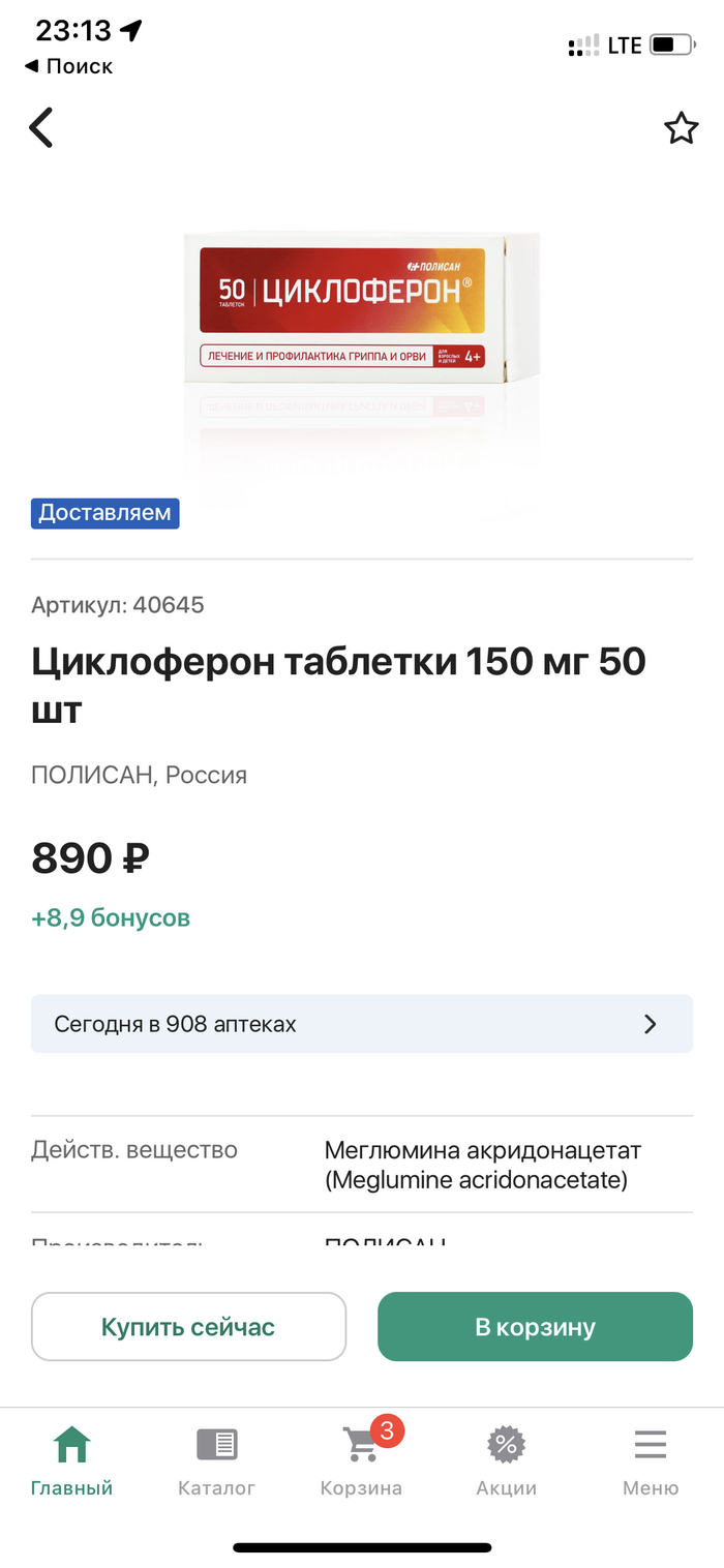 Ну мы можем заказать его на завтра по цене "пусть будет 3000р" дороже чем в других аптеках на 100 руб. Я естественно отказался ,и молча ушёл.