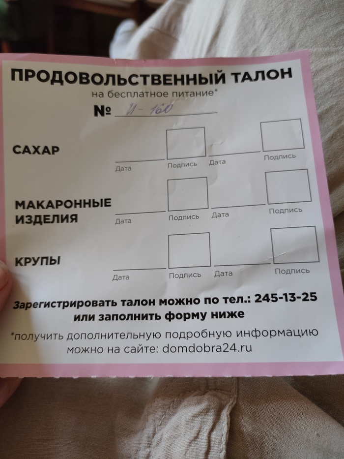Так же я хочу упомянуть то, что моя бабушка принимала участие в голосование по поправкам в Конституцию. При выходе из избирательного участка, к ней подошёл человек, и в обмен на персональные данные бабушке дали "Продовольственный талон" (обратите внимание на перфорацию снизу, где был квиток с заполненными ПД). На этом талоне указан городской номер этой "клиники": 8-812-245-13-25. Совпадение? Во ВКонтакте я обнаружил пост женщины, матушке которой дали такой же талон. Но они сумели уберечься от этих мошенников: https://vk.com/wall125557991_16492