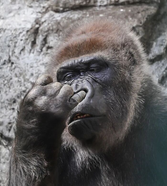 Оскорбление в адрес Майкла, содержавшее четыре слова, Коко произнесла на языке глухонемых. Обычно гориллы и шимпанзе оперируют очень простыми предложениями, состоящими из одного-двух слов: «Дай» или «Дай банан». Или «Дай зеленый банан» (если хочет, к примеру, огурец — кстати, это означает, что обезьяны способны сравнивать и рассуждать логически). Но Коко — гений. Была гением. К сожалению, она умерла в 2018 году, прожив 46 лет, что довольно много.
