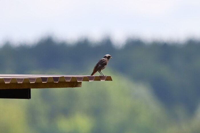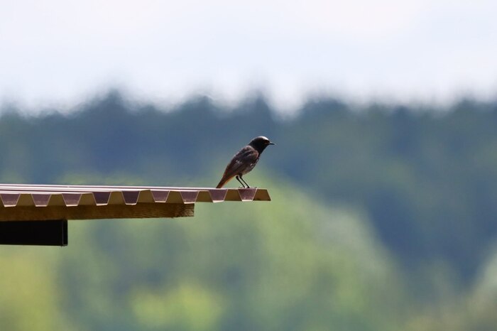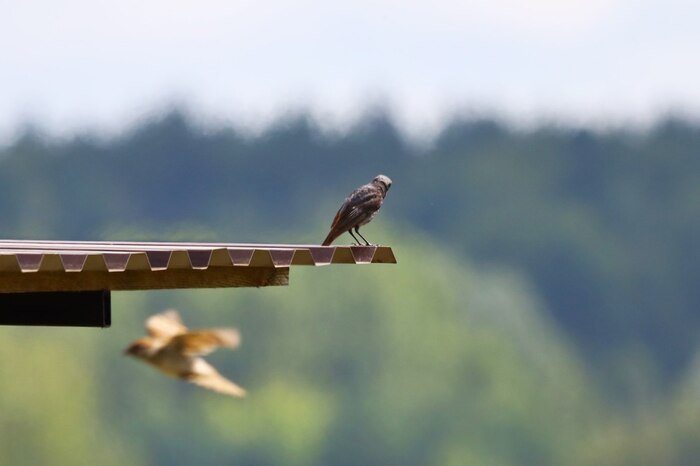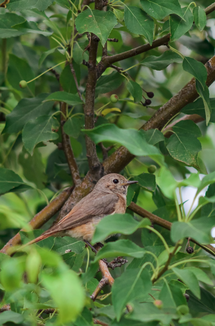 Обитают на соседнем участке мелкие птахи горихвостки, живут уже не первый год. Но в этом году посчастливилось заснять все семейство горихвосток. Слёток довольно неплохо летает на короткие дистанции, прячется в зарослях малины и кустарниках.