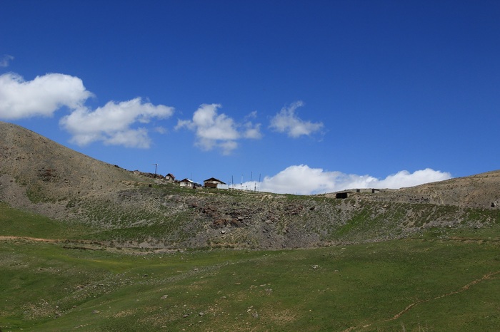 Вот он и перевал. Видны строения метеостанции. Когда-то эта дорога была очень оживленная. Машины шли вверх и вниз навстречу друг другу. А теперь тут никого. Можно останавливаться в любом месте и стоять сколько угодно.