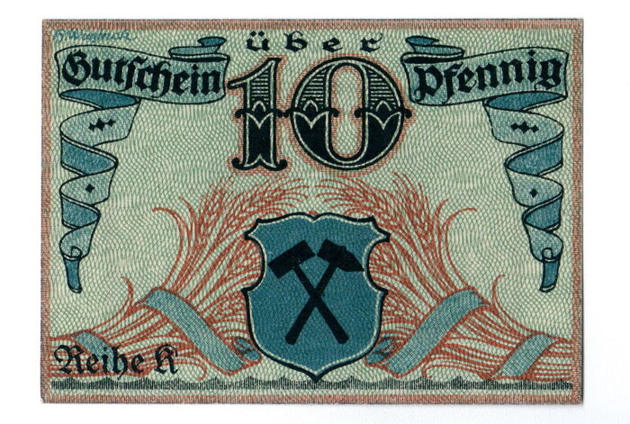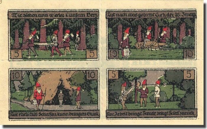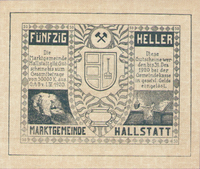 Нас интересует ландшафт под овалом с дубами, соснами и входами в шахтные штольни. Ну и конечно же скрещенный горняцкий инструмент и приспособления для горнорудного дела - символы природного богатства страны. Собственно герб фигурирует и на современных банкнотах Гондураса, просто на старинные смотреть интереснее и приятнее.