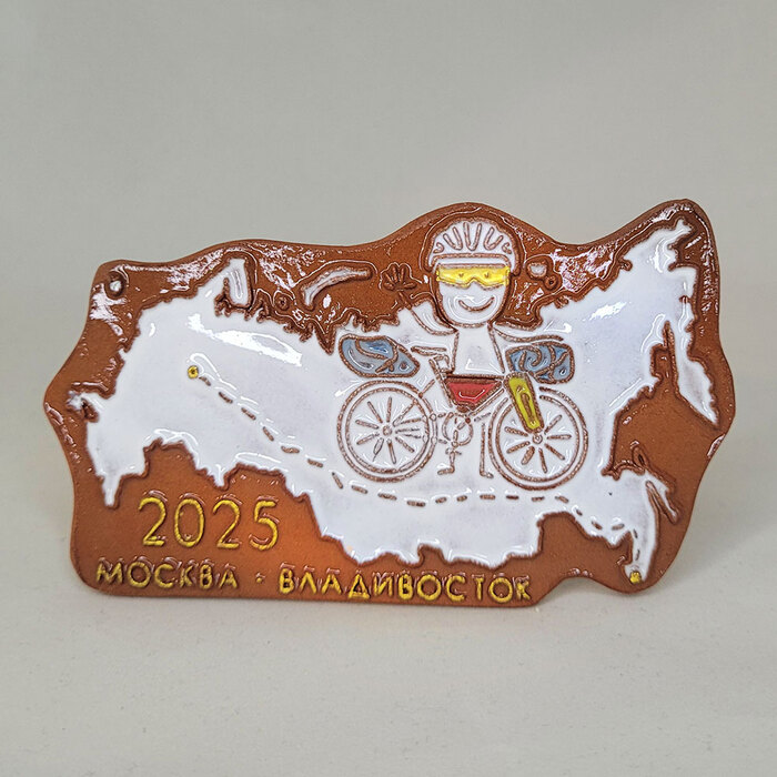 Как-то бродил в Сети и попалась мне статья одного любителя велосипедных поездок. Человек перегорел на работе, уволился и проехал на велосипеде из Москвы во Владивосток за 52 дня. Ночевал в основном в палатке. Средний темп езды - больше 150 км в день. Под впечатлением от такого события я сделал ему магнитик. А потом ещё идея пришла и сделал первый раз магнит по фото.
