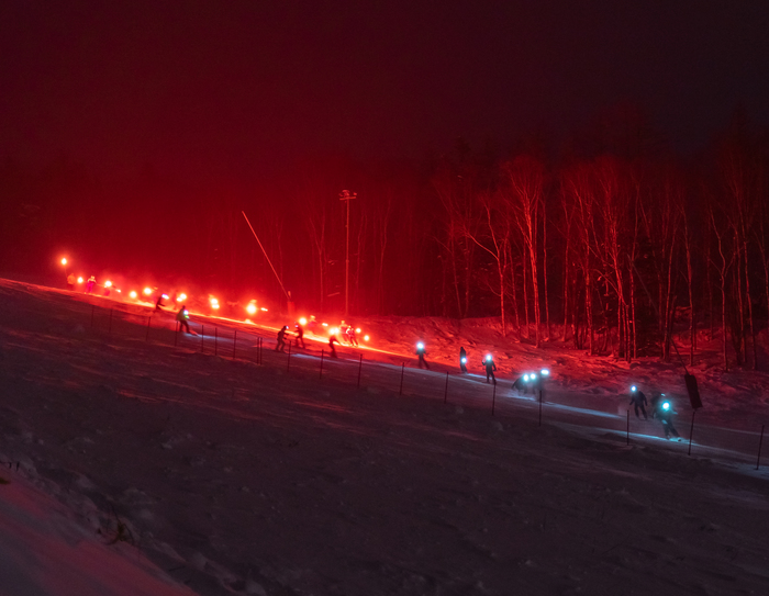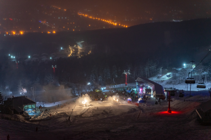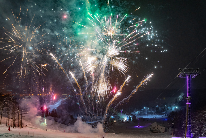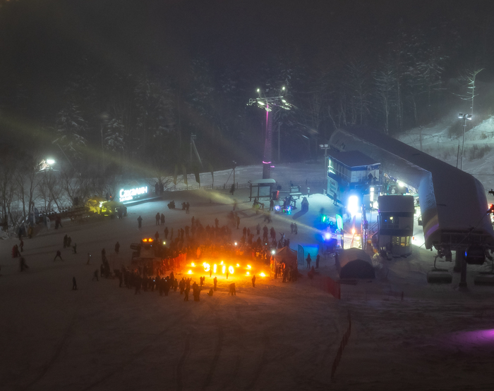 На крупнейшем дальневосточном горнолыжном курорте Горный воздух отметили 60-летие с момента открытия. Зрелищным финалом праздника стал массовый спуск лыжников и сноубордистов с факелами и фонариками.