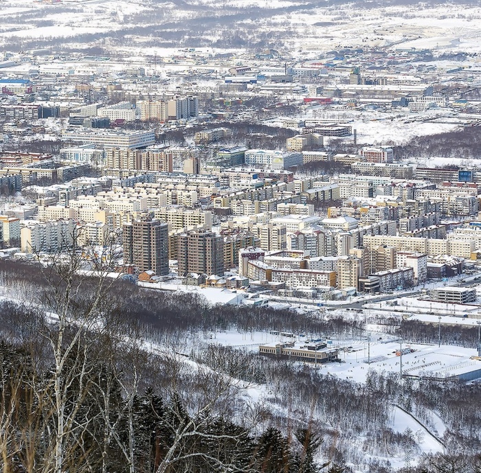 А эта сказка открывается с горы Красной горнолыжного комплекса Горный воздух, стартовая площадка канатной дороги которого расположена чуть ли не в центре Южно-Сахалинска (в двух шагах от центральной площади Победы)