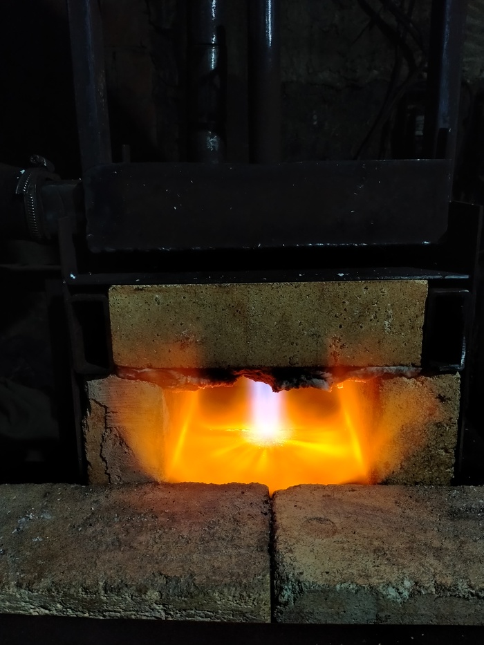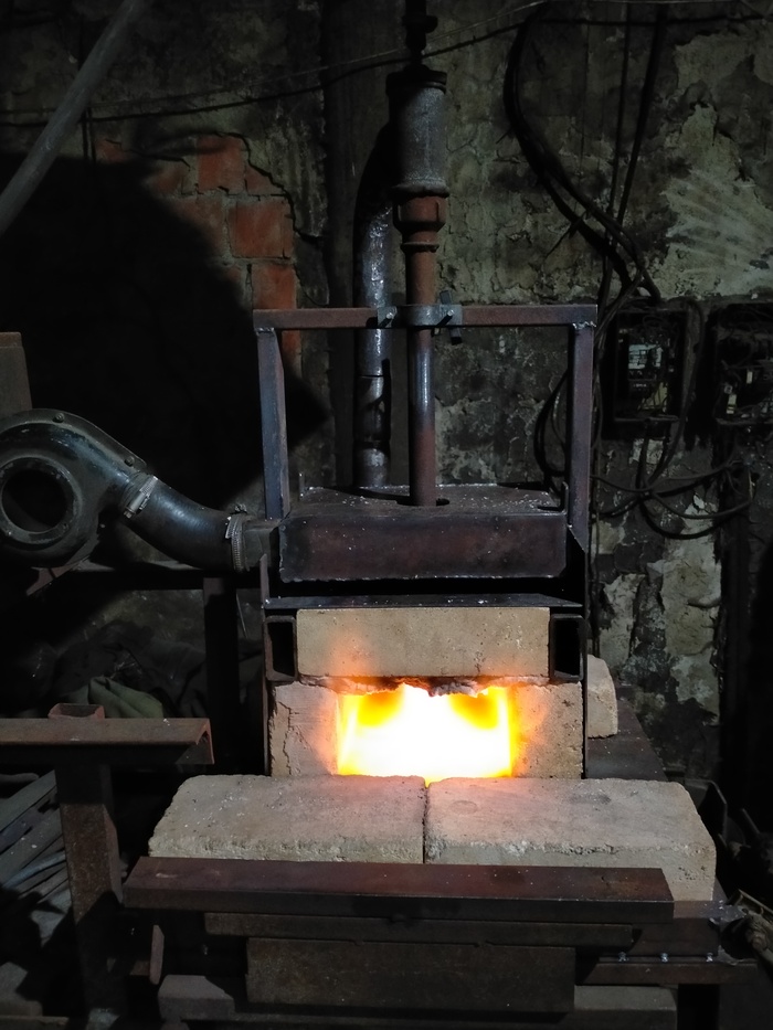 Одно время, когда хотел работать с металлом, но тратил свою жизнь на нелюбимый офис, смотрел разные конструкции горна. И попался мне термин «рекуператор». Его функция заключается в том, что в форсунку подаётся подогретый воздух. Пламя от горна поднимается вверх, подогревает корпус рекуператора, вентилятор подаёт воздух, тот нагревается и в форсунку продаётся уже горячим. Воздух несёт кислород, но будучи холодным, он в то же время охлаждает горн. Таким образом, при подаче уже горячего воздуха в смесительную камеру форсунки, температура в горне будет выше, расход газа меньше, нагрев быстрее.