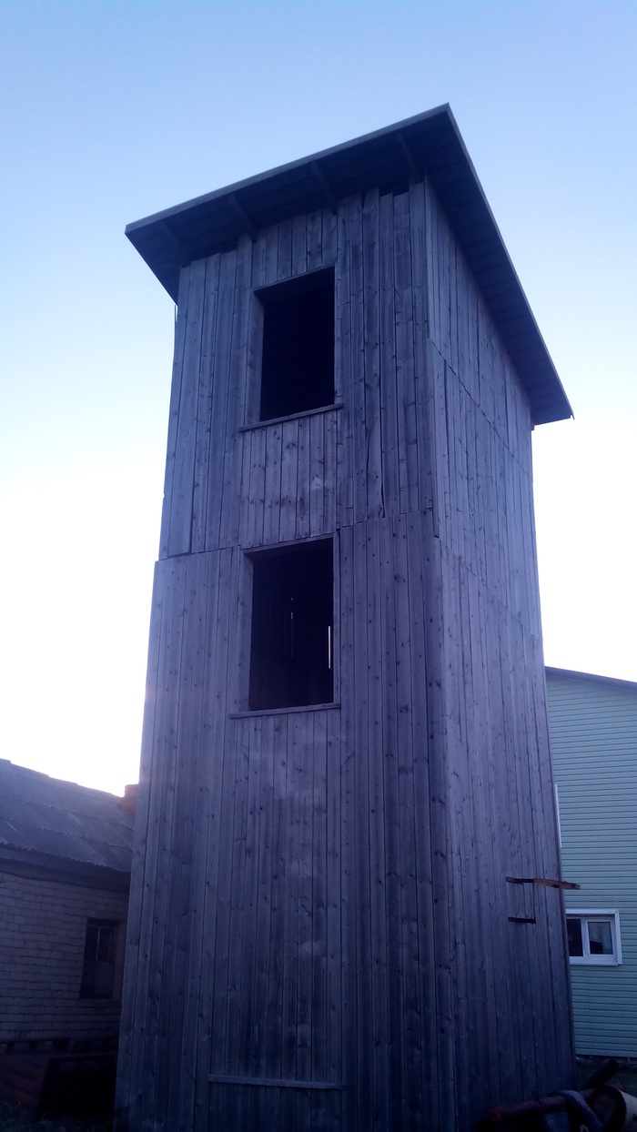 А вот и модная пожарная каланча, я насчитал таких две. Конструкция современная, типа "Скворечник дяди Игната" На вид надежно.
