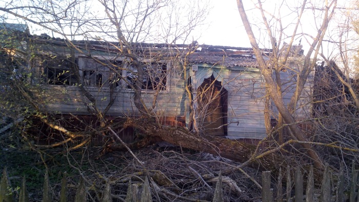 А вот тот самый и металлический не плачет дом с заглавного снимка, спаленный пожаром и превращенный в отхожее место.