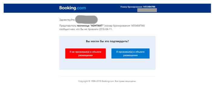 Пользовался Букингом около года до этого, проблем не было, бронировал и с предоплатой и без оплаты. И тут понадобилось заехать в г. Курчатов, нашел предложение на Букинге от гостиница "Контакт", бронирование у них было только по предоплате. Ничего страшного, оплатил 1500 рублей. Звонить перепроверять не стал, так как хочется верить, что живем в цивилизованном мире, тем более, номер был не последний и дни посещения не популярные.