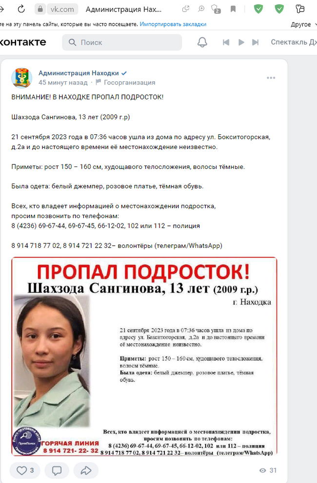 Приморский край Дальний Восток Находка Чиновники Город Находка Негатив Волонтерство Пропажа Пропал человек Дети Поиск людей Поиск Скриншот Длиннопост Без рейтинга