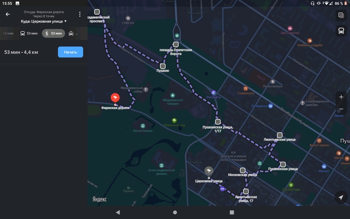 - электричка с Витебского вокзала (Пушкинская/Звенигородская) или метро Купчино, но я бы настаивал на Витебском вокзале (в случае общественного транспорта), это интереснейшее место, да и дорого оттуда, изначально, вела именно в Царское село (1837). Да, придется прогуляться от вокзала, но это минут 15-20.