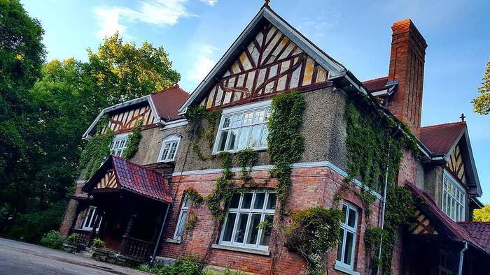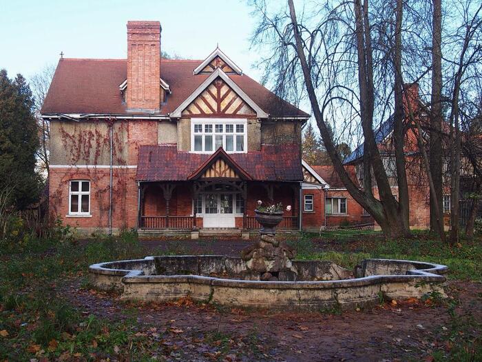 В Отдельном парке Царского Села в стороне от дворцовых стен можно найти настоящий кусочек Англии. Дача напоминает собой охотничий замок и не сразу видна в глубине сада. Это одна из первых построек в стиле модерн - дача великого князя Бориса Владимировича, подарок самой королевы Виктории.