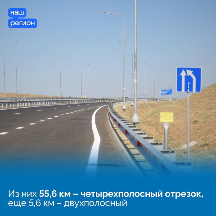 Движение по первому участку до села Скворцово открыли в декабре 2021 года. Общая длина четырехполосной трассы Симферополь — Евпатория — Мирный составляет более 100 км, от Симферополя до Евпатории 83 км.